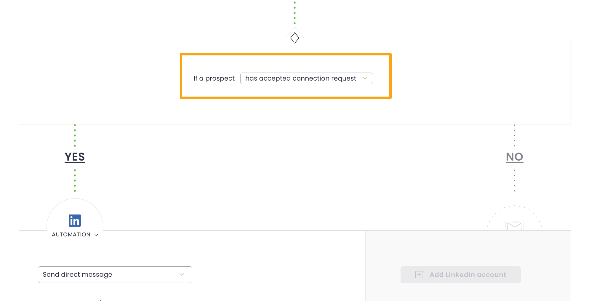 You can set a condition based on the task of sending a connection request on LinkedIn. If your prospect accepts an invite, you can, for example, send a direct LinkedIn message via the LinkedIn Automation task. Otherwise, you can choose another way to communicate with the prospect, such as by sending an email as the next step in the campaign sequence.