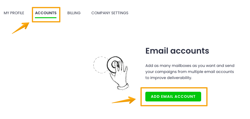 Alternatively: you can go to Settings (expand the menu in the upper right and click Settings), then click the green button Add Email Account.