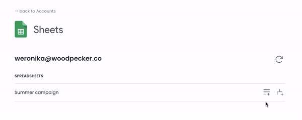 Use a refresh button every time there is a new spreadsheet created on your Google Drive in order to get it integrated with Woodpecker.
