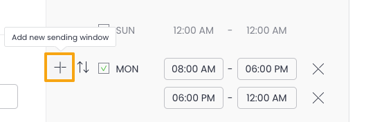 Set a break between the daily sending. Let's say you'd like to reach your prospects in the morning when they usually check their emails, and in the afternoon before they leave work. Add up to 3 windows to adjust the Delivery time to your prospects' daily schedule.