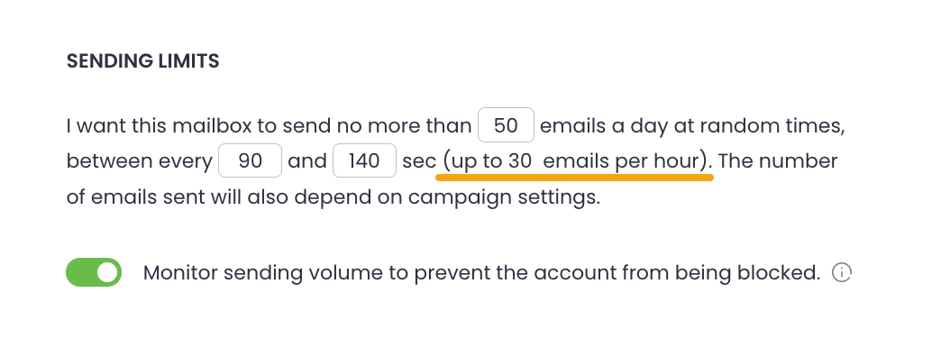That means you can send around 30 emails per hour from a chosen email address (additional seconds are used for procedures like checking the validity of an email address). We generally do not recommend lowering those default settings.