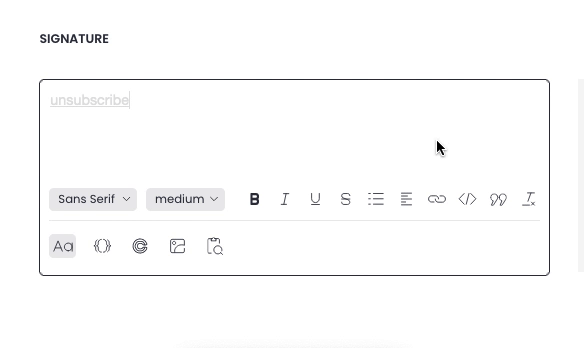 4. The 'unsubscribe' link is added to the place where the cursor is at the moment.