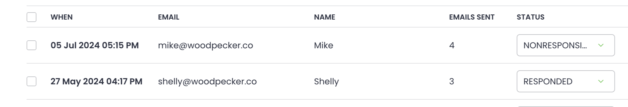 In case your prospects reply, unsubscribe, or the message gets bounced, Woodpecker updates the status accordingly.