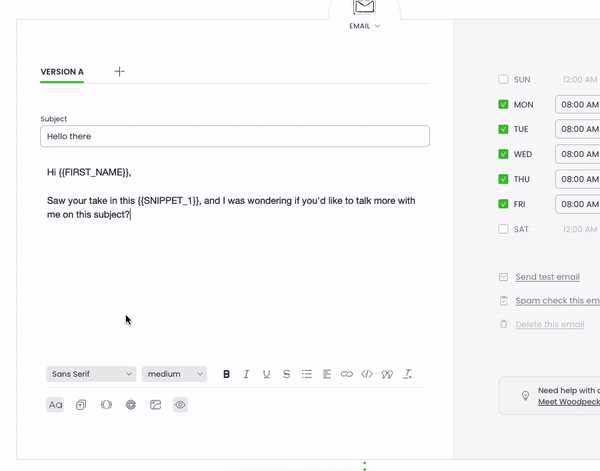 With Templates, you’re able to set up frequently used email copies and keep them all saved in Woodpecker. This feature is available to all users, except Guests (who can’t create or edit campaigns).