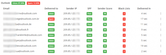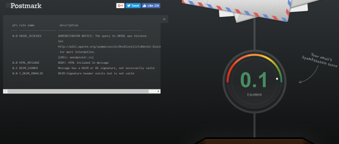 This email deliverability tool will show you your email server IP, the info about your SPF & DKIM configuration, the general assessment of SpamAssassin system (more about it further in this post), the assessment of your message content in the “eyes” of spam filters, your potential presence on some blacklists, and the info about any broken links in your message.