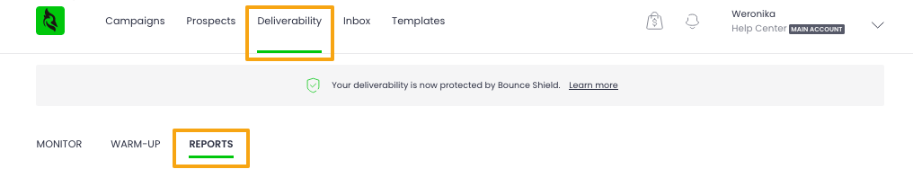 Deliverability tab is the best place to check your sending trends track your sender reputation from one place. You can review 6 types of stats there: Emails Sent, Delivered Emails, Views, Replies, Bounces, and Interest Level. Read more about Deliverability tab »