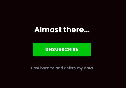 Screen from the Unsubscribe site with the "unsubscribe and delete my data" link