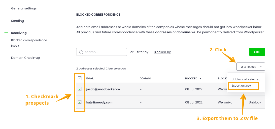 How to remove or block emails from Woodpecker Inbox