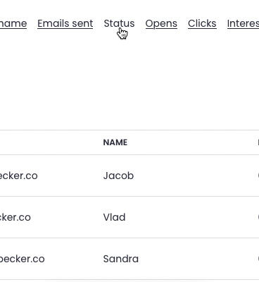 To start, choose the campaign that you want to export the prospects from. Navigate to the Prospects tab in the Campaign. Here, you can filter your prospects with the “Opens” and “Status” filters.