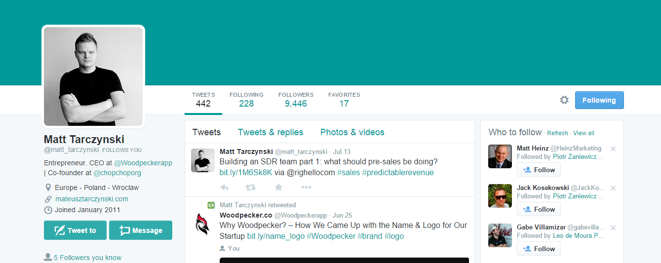Twitter and Facebook can tell us a lot about the prospect’s language and interests. Reading at least a few posts from our addressees’ social media profiles allows us to feel the tone we may then use in our emails, as well as find some things we and our addressees have in common. If we point to the things in common in our email, it gets a bit warmer at once.