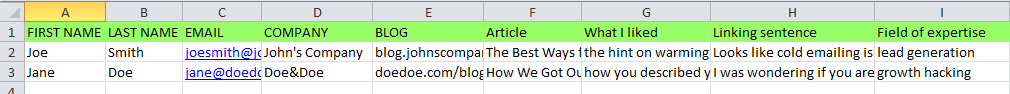Seems kind of counterintuitive, but this way I can quickly realize what custom fields I’ll need for my email. And that’s how I make sure I fill in my contact base with all the necessary data. Then, I put them all in the spreadsheet with appropriate labels.