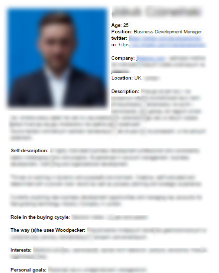 So in the end, it looked like a classic persona profile. The crucial difference was, however, that instead of a made-up “Sad Samuel,” we created a profile of an actual person, who has already trusted Woodpecker as a company and is currently drawing value from the solution we offer.