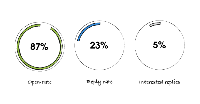 Usually, we get 87% open rate, 23% overall reply rate, and 5% positive response rate – from people who are interested in talking about more details.